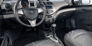 Невысокая цена на Равон Р2 совершенно не означает, что на отделке интерьера экономили. Наоборот, салон оформлен только качественными материалами, приятными на ощупь. Внутри авто имеется все необходимое для комфортной езды: эргономичные передние кресла с функцией подогрева, удобный трехспицевый руль, аудиоцентр с USB-разъемом и Bluetooth, система кондиционирования воздуха, вместительный «бардачок» и подстаканники.